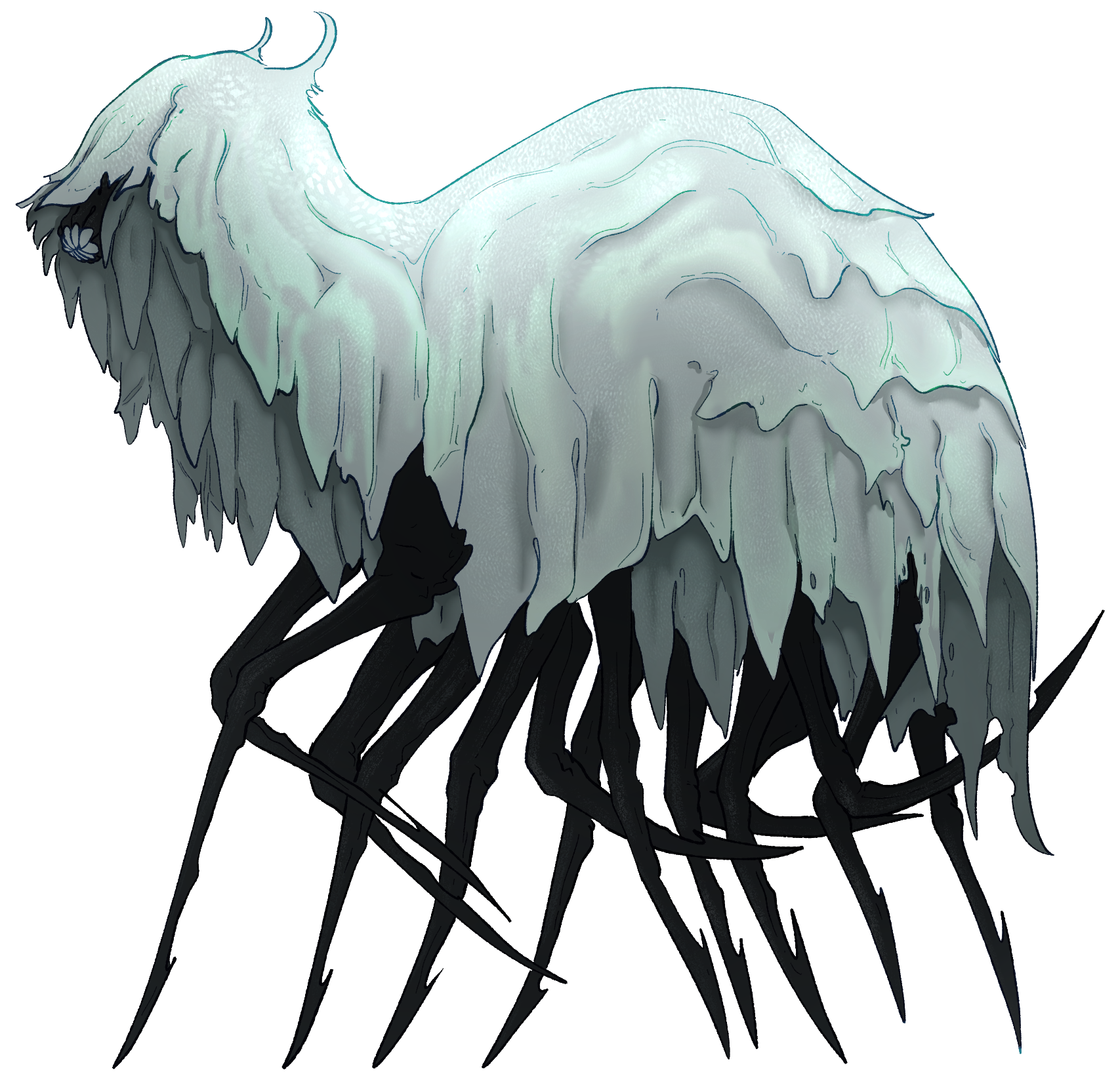 A smaller horse. They walk on 15-16 long black chitinous legs that end in spear points.