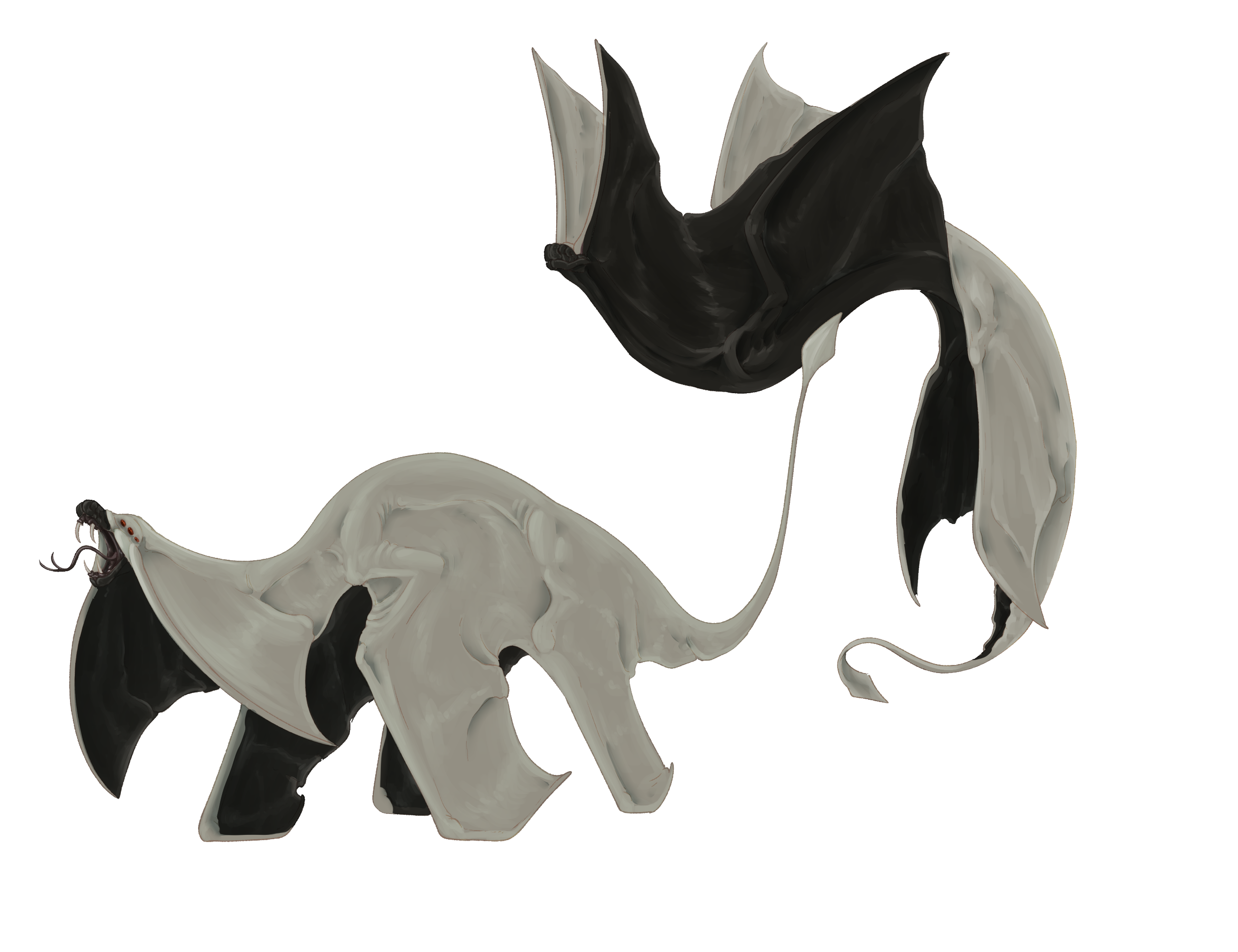 Tiny little things that flit around Bloodpriests. Vampiric in nature they are naught but glorified ticks. Yet offer an uneasy alliance. Their rapid flapping and smooth mesmerizing flight patterns disorient others. And in mass swarms can completely confuse and distract, whilst the Bloodpriest strikes. The eyeless Bloodpriests are unaffected by the pests they tolerate. In return, Scaffénla roost between their chitinous plates. Sinking their fangs into scent and pheromonal glands to irritate and direct blood flow. that of which they feast upon. Though that is not to say that they will not swarm any other living thing, they will do it if their host dies or manages to free itself of its parasites.